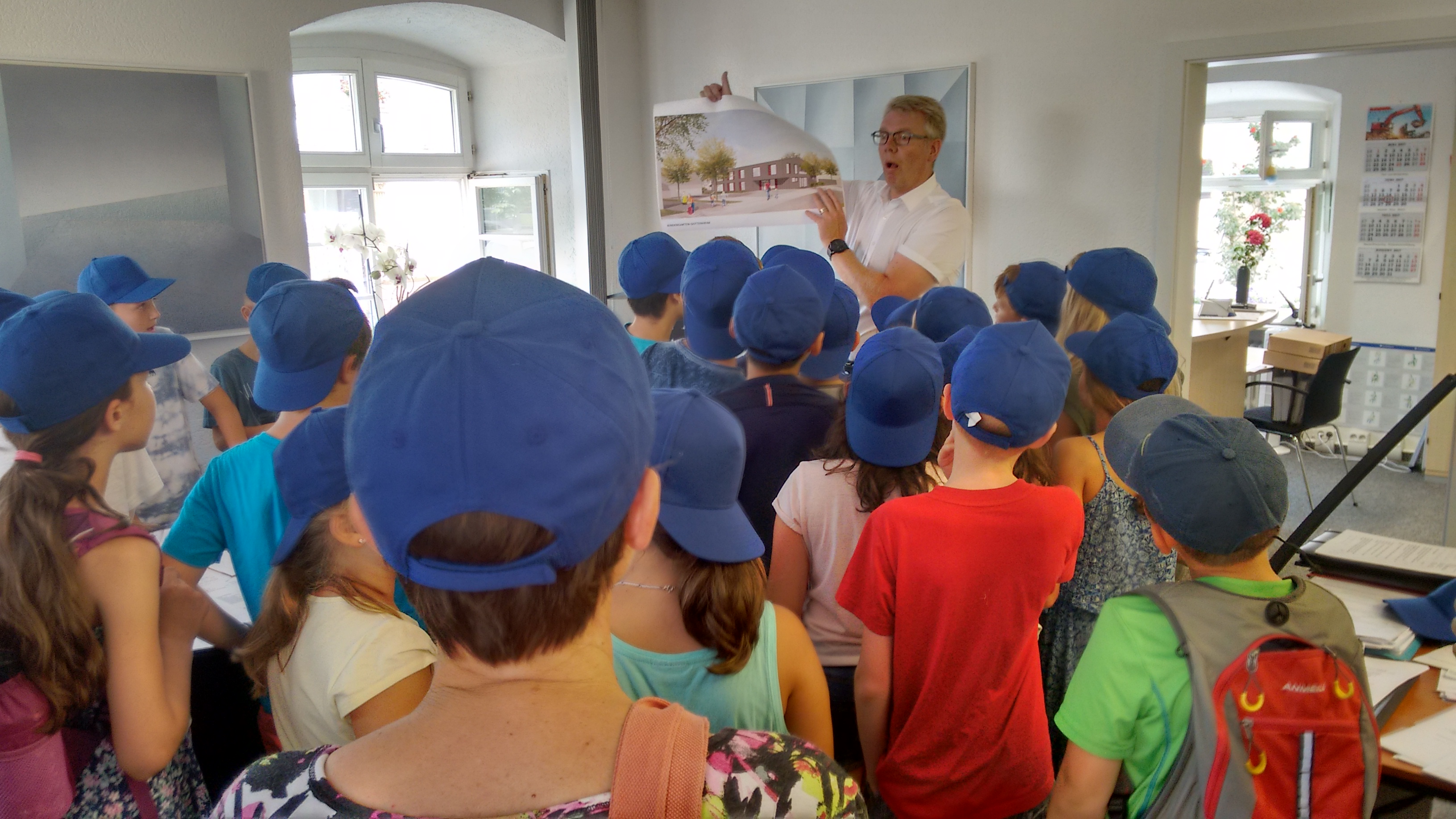 Mit großen Interesse verfolgen die Gottenheimer Kinder den Ausführungen Ihres Bürgermeisters Christian Riesterer zu den Planungen des neuen Kindergartens. Dies war Teil der Dorfdetektive, genauso wie die Gemeindeerkundung und die Präsentation der Ergebnisse im Gemeinderat. Mit Bürgermeister Christian Riesterer sprach Udo Wenzl: